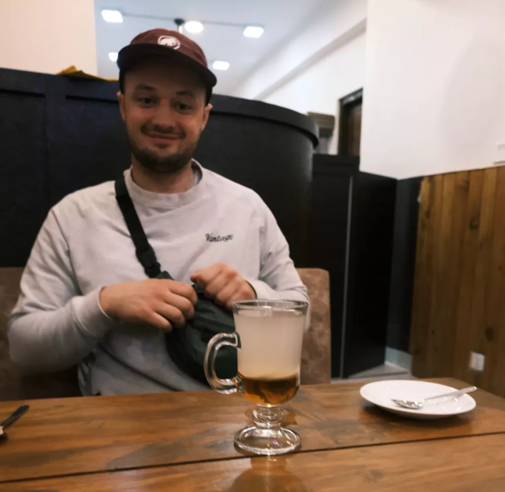 Postscript: Not a lot of great pictures from Kathmandu, wasn’t at my best here as a photographer, but please enjoy this picture of Christian delighted by his Honey-Lemon-Ginger tea.